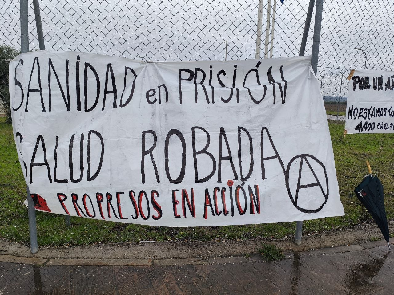 Terminado el reparto nos dirigimos a la valla del modulo de mujeres donde para expresar nuestro apoyo leímos el comunicado y echamos unos cánticos dedicados a lxs carceleros. Ni que decir tiene que en respuesta se oyeron los gritos de DENTRO, siendo esto la culminación de la mañana.