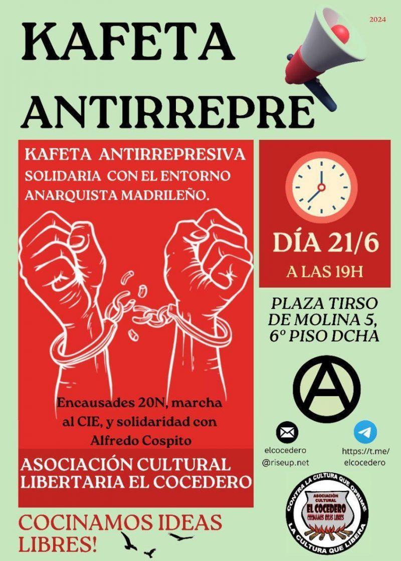 Las jornadas continúan, cerrando mañana el ciclo de resistencia anarquista catalana, con la presentación de los libros "Oriol Solé Sugranyes: 40 años después" y "Salvador Puig Antich – Guerrilla anticapilatista contra el franquismo". A las 19h en los locales de la CNT-AIT de Madrid. ...