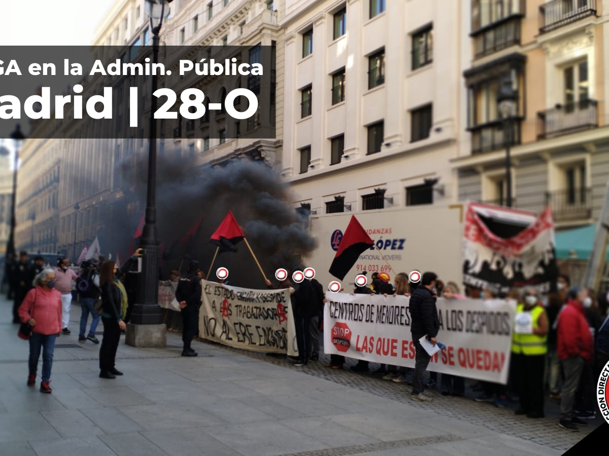 El pasado jueves 28 la CNT-AIT apoyó la huelga de Administración Pública convocada por varias organizaciones para exigir la fijeza de las/os trabajadoras/es temporales e interinas/os de todas las administraciones, después de años y décadas en fraude de ley. Compañeras/os de la Federación Local de Madrid acudimos a piquetes informativos desde primera hora de la mañana. Partiendo de la Consejería de Presidencia de la CAM, en la Puerta del Sol, donde empezaban a entrar las/os trabajadoras/es, subimos por Alcalá parando en diversas sedes de la Administración del Estado, de la Comunidad y del Ayuntamiento de Madrid, como el Ministerio de Hacienda y Función Pública, el Ministerio de Igualdad, la Consejería de Educación de la CAM y el Área de Gobierno de Hacienda y Personal del Ayuntamiento. Llegamos hasta Cibeles, donde compañeros/as de la Sección de CNT-AIT entramos a repartir los panfletos por todas las plantas.
