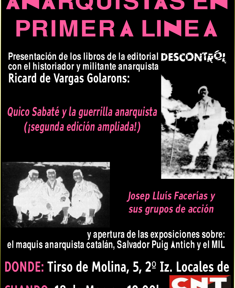 Entre el 18 y el 26 de Marzo, actividades en los locales de la CNT-AIT de Tirso de Molina, nº 5, en otras zonas de Madrid, en Coslada, Alcalá…