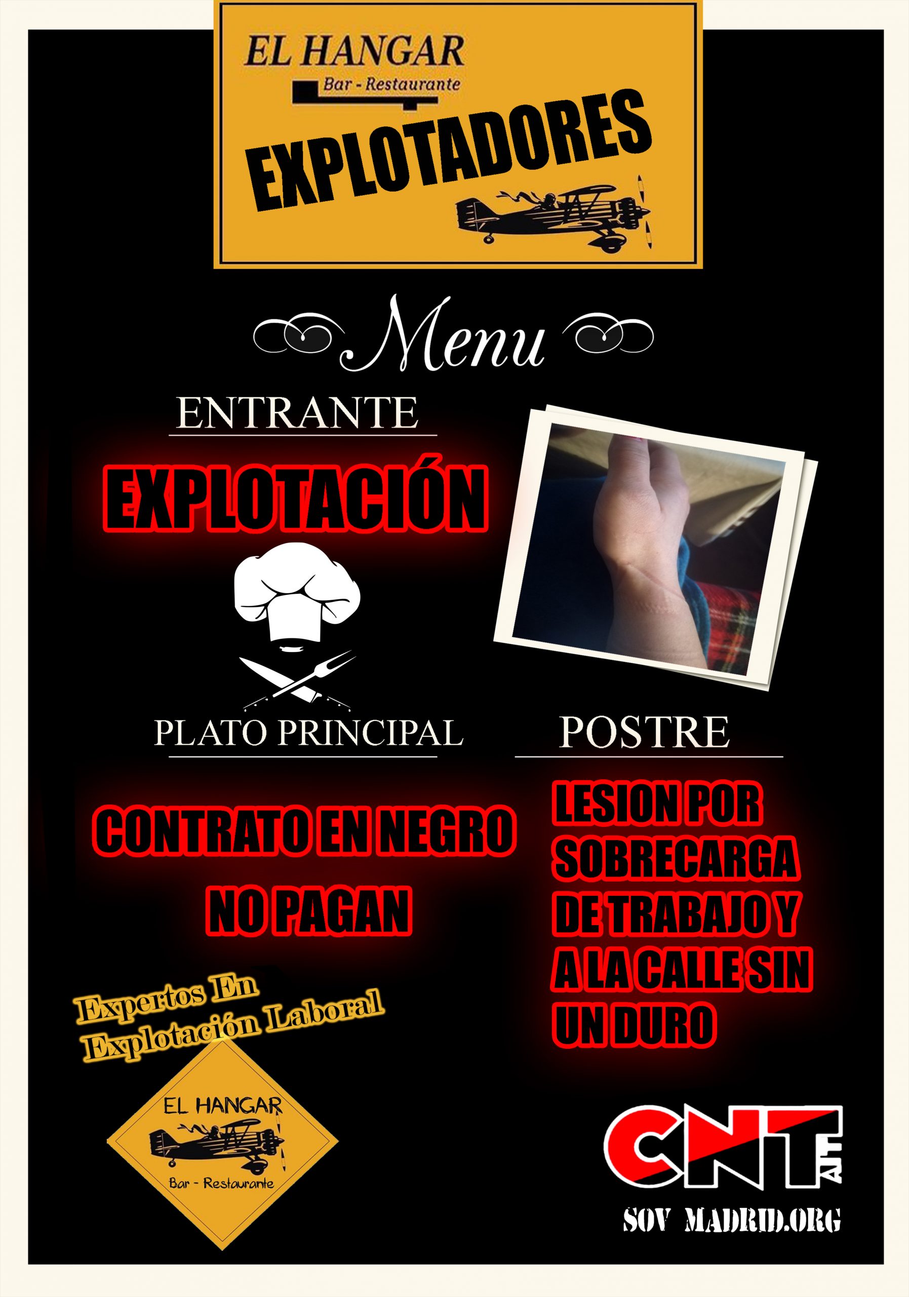 Nuestra compañera trabajó durante un periodo muy breve para este bar-restaurante (4 días 2 de ellos hábiles) algo fácil de entender por los hechos que narraremos a continuación. El Hangar se encuentra… Sigue leyendo...