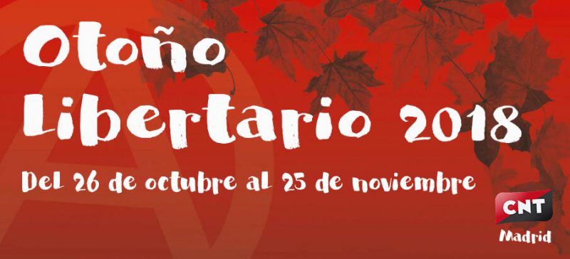 Otoño libertario 2018 Jornadas culturales de la Federación Local de CNT Madrid Desde el 26 de octubre hasta el 25 de noviembre salpicaremos Madrid con una serie de actos culturales que pretenden… Sigue leyendo...