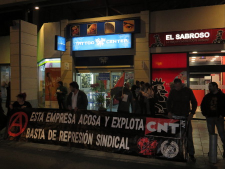Nada más y nada menos que dos piquetes a la misma hora (las 7 de la tarde), teníamos preparados para plantarle cara de nuevo a la mafia empresarial de Tattoo Center y Rastatto S.l.