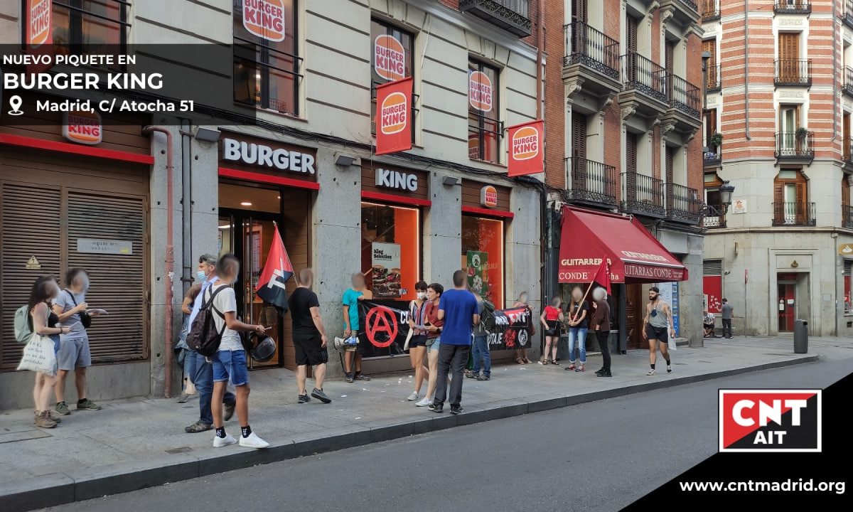 El viernes 3 de septiembre, dentro de la segunda semana de lucha convocada por CNT-AIT Albacete contra la empresa de comida rápida, CNT-AIT Madrid realizó un nuevo piquete informativo, esta vez en el Burger King de la céntrica calle Atocha.