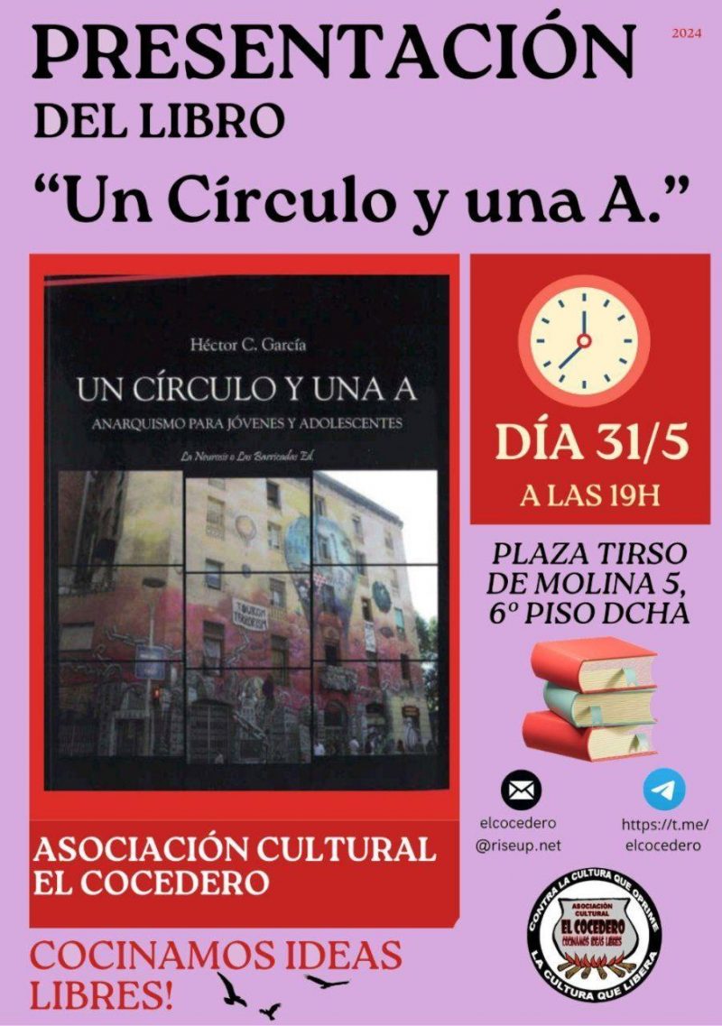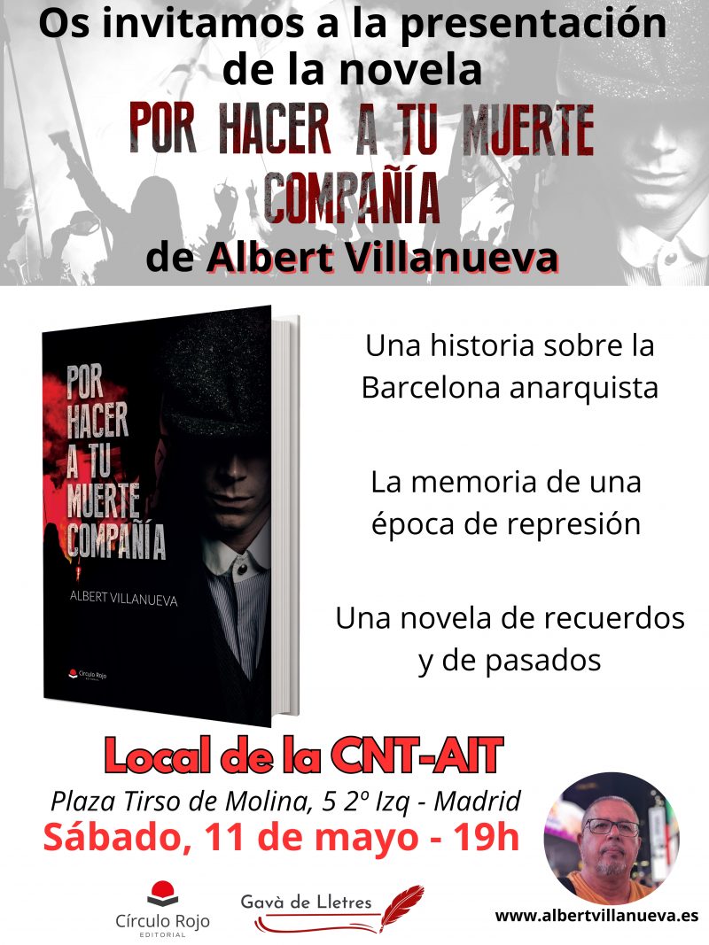 El próximo sábado 11 de mayo a las 19:00 horas se presenta en los locales de la CNT-AIT de Madrid, Pza. Tirso de Molina nº 5, 2 izda. la novela "Por hacer a tu muerte compañía". ...