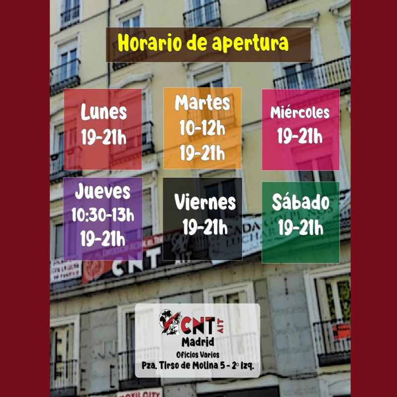 ¿Estás harta de tanta explotación?¿Quieres organizarte y luchar? Somos tu sindicato: horizontal, asambleario, autogestionado y revolucionario.Lucha con tus iguales: sin liberados (y sin subvenciones).Te esperamos, te asesoramos, te apoyamos.https://sovmadrid.org/horario-de-apertura-y-permanenciasSigue leyendo...