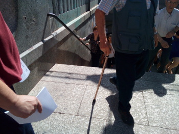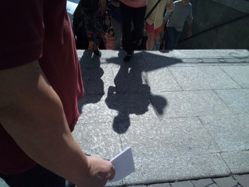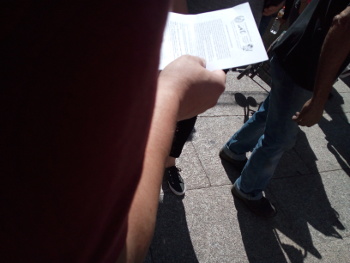 Ayer domingo unos compañeros, aprovechando que estaban por Tiso de Molina atendiendo uno de los puestos en los que vendemos libros y material diverso, decidieron que era un buen momento para informar a la gente que pasaba por la plaza del conflicto con la empresa Inditex que un compañero nuestro mantiene con dicha empresa.