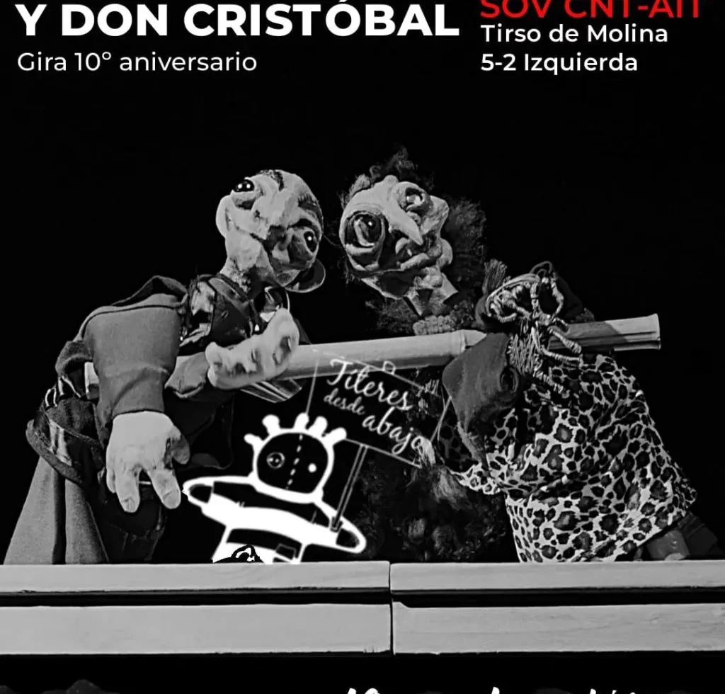 “La bruja y Don Cristóbal” Compañía Títeres desde Abajo 6 de marzo de 2026 A las19hs En Tirso de Molina 5 – 2. º izda Se cumplen diez años de la detención de los componente de la compañía Títeres desde abajo. El 5 de febrero de 2016 , cuando representaban en Madrid su obra La … Sigue leyendo [EVENTO] Titeres – La bruja y Don Cristóbal